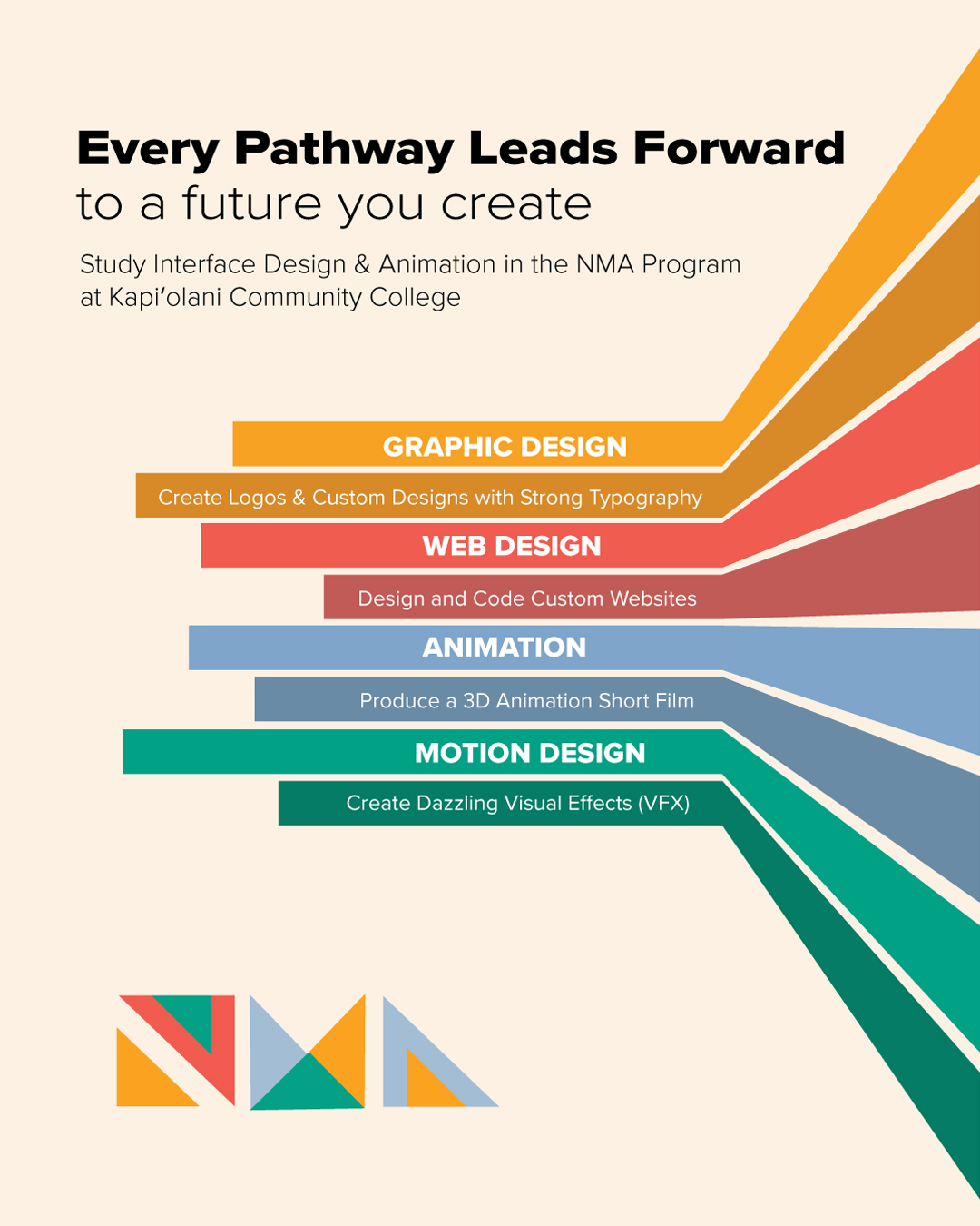Structured pathways highlight clear direction and growth within each program. The layout reinforces the idea that every choice moves you toward a creative future.
